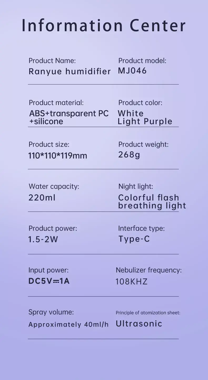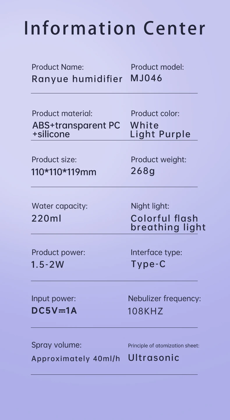 Nome do produto: luz atmosférica do umidificador da cápsula espacial